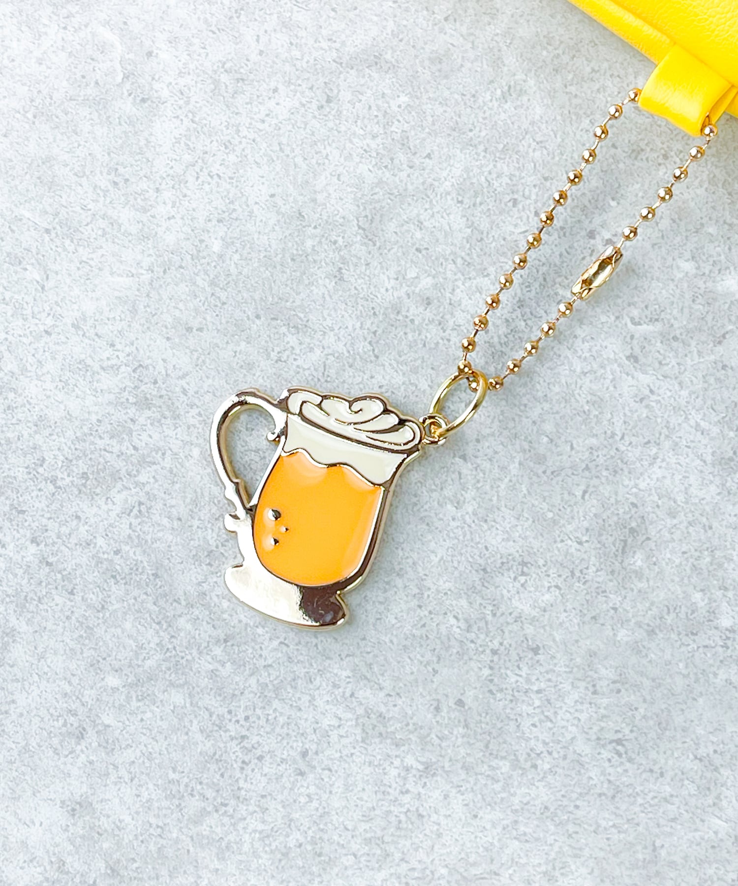 バタービールのチャームは取り外し可能で、好きなところにつけられます。