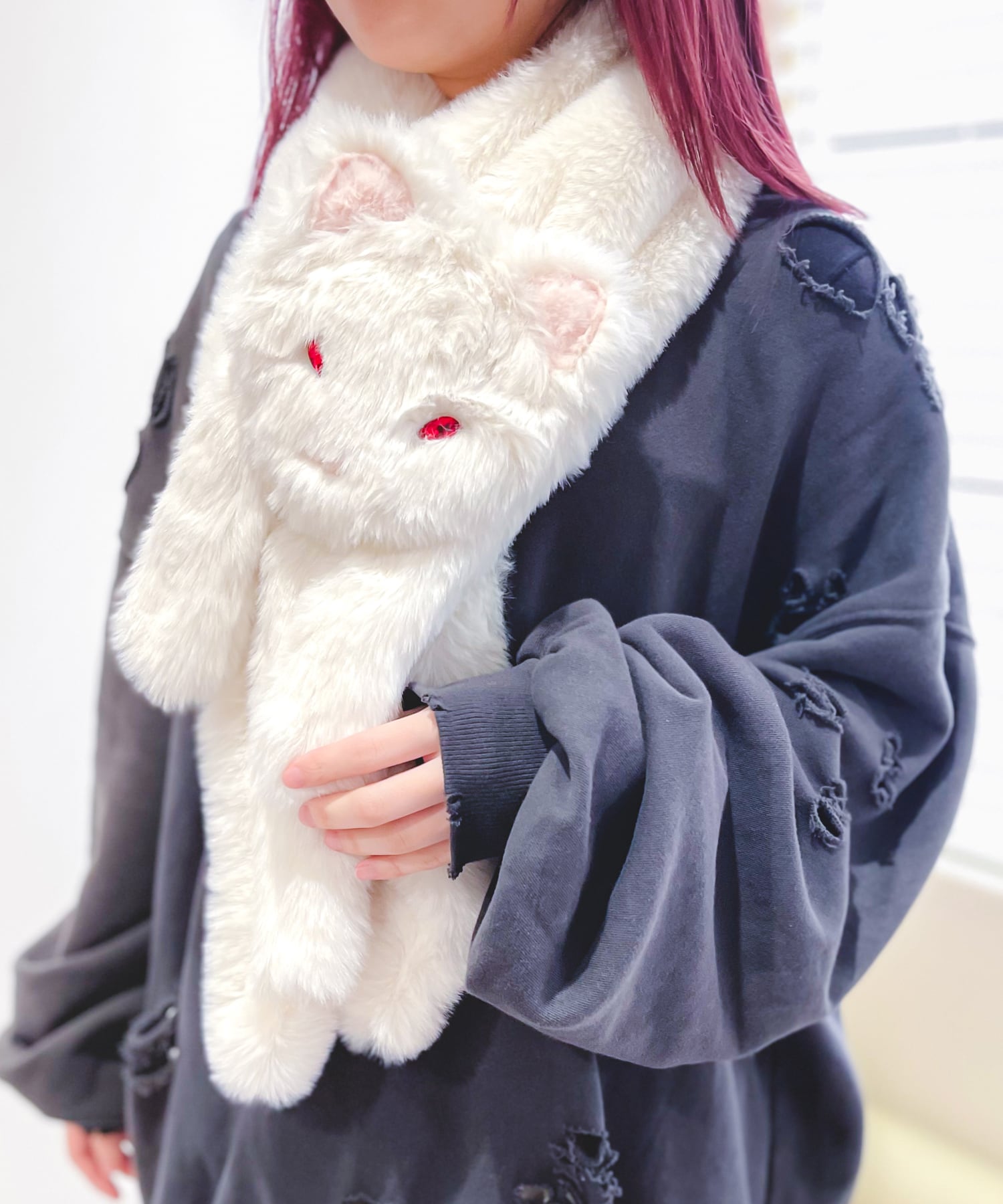 ぬいぐるみのようにふわふわの手触りと、宝石のように輝く目がポイントです。