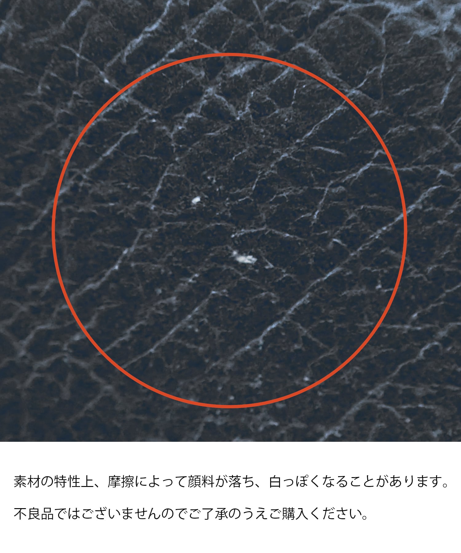 この製品は素材の特性上、摩擦によって顔料が落ち、白っぽくなることがあります。