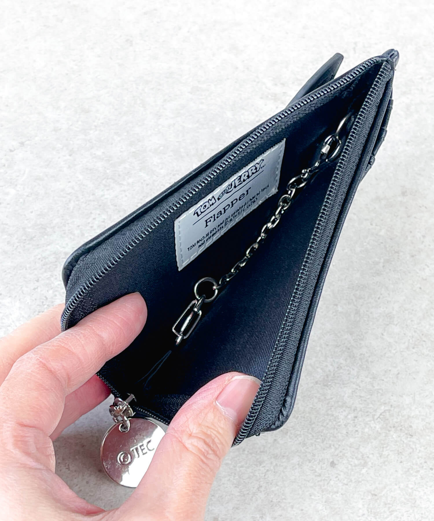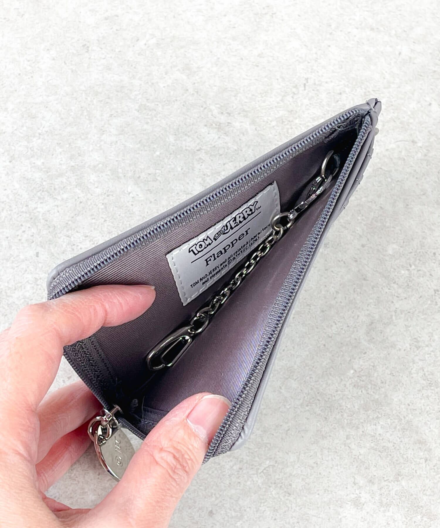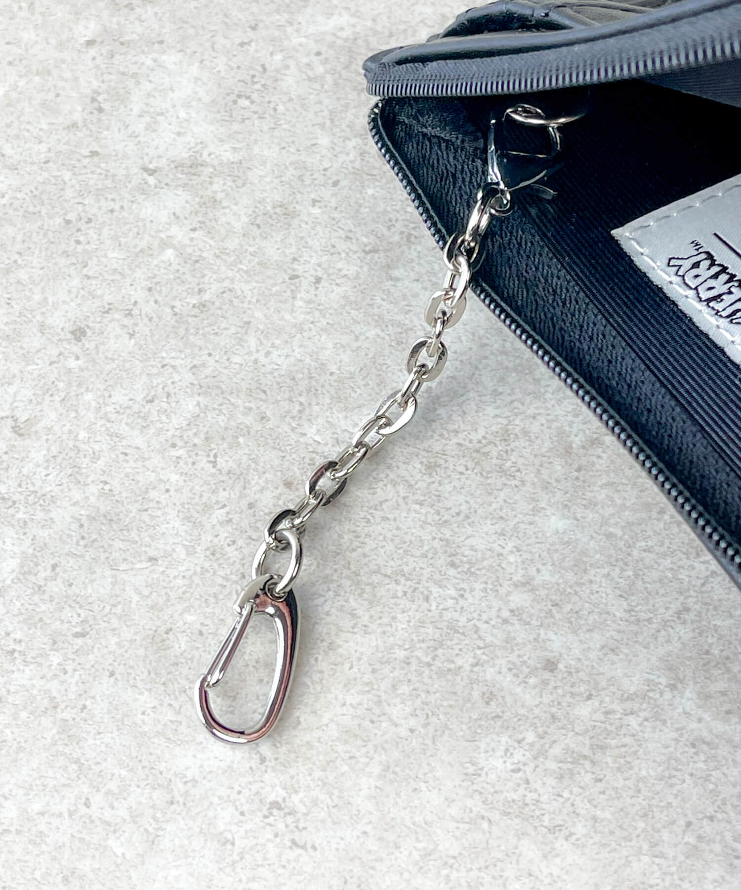 キーチェーン付きのファスナーポケットには鍵や小銭などを入れられます。