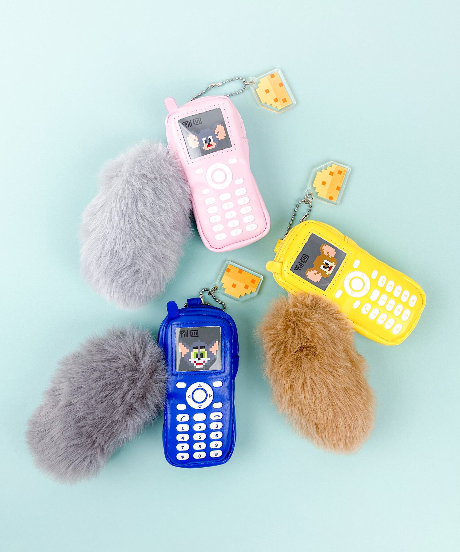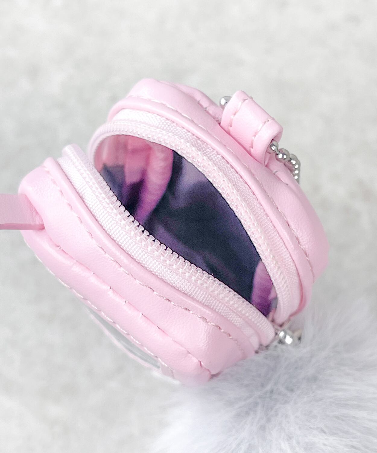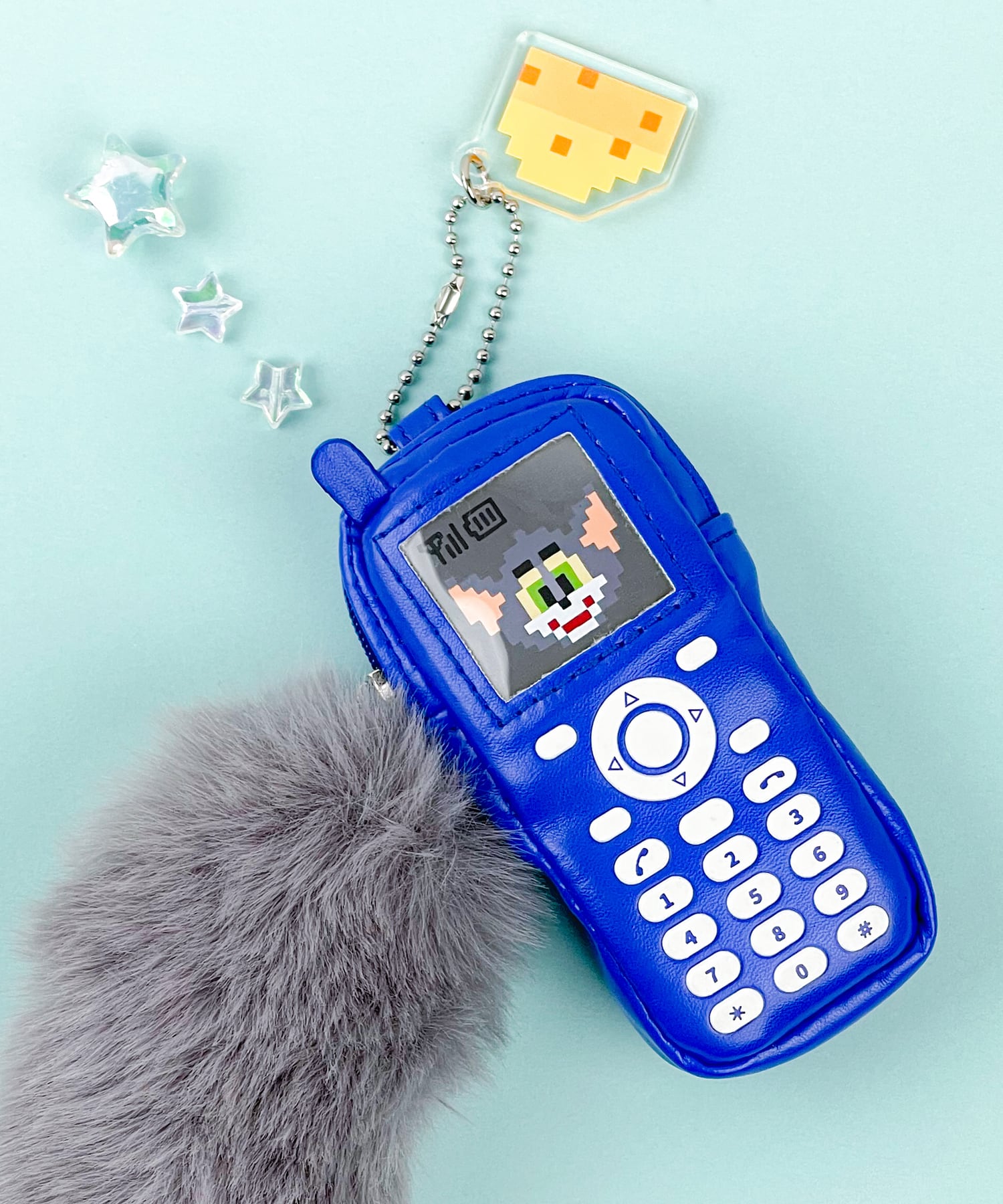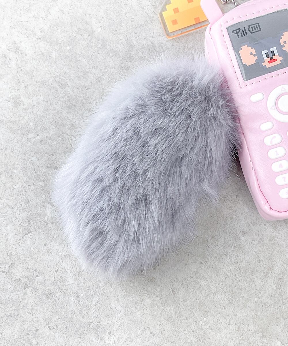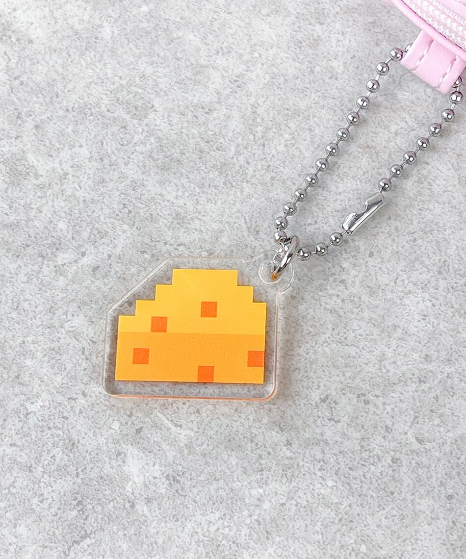ドット絵のチーズチャームと、ふわふわしたファーの引手がキュート。