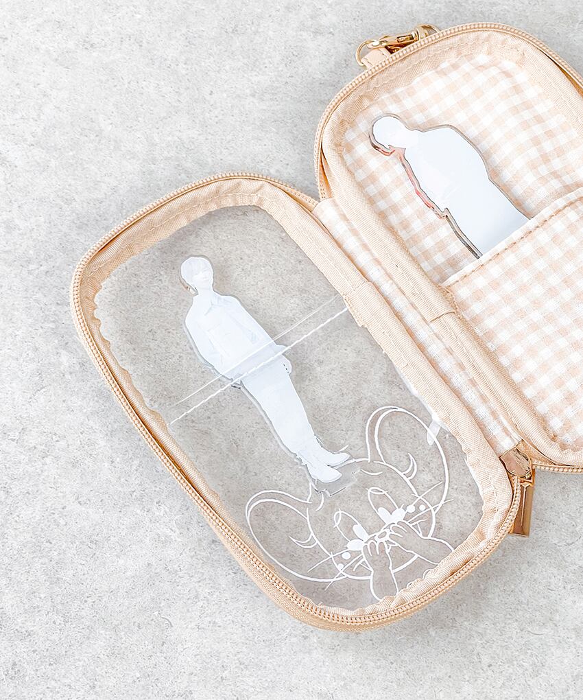 透明なフラップの他に、ポーチ本体にもポケットがついているので、アクスタを分けて収納できます。